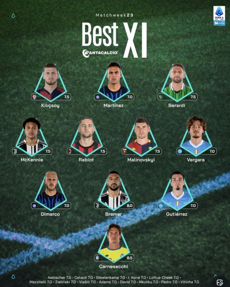 意甲23轮最佳阵容: